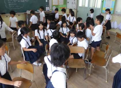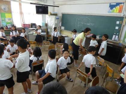 教室に入ったときは、「椅子とりゲーム」が始まるところ、