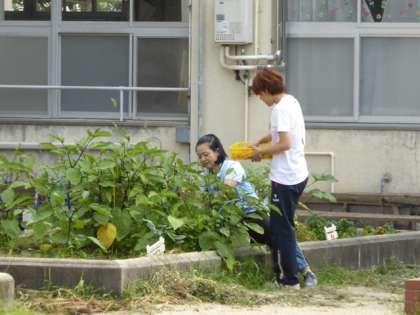 学習園で、学園の先生が「朝づみ」した新鮮な野菜、