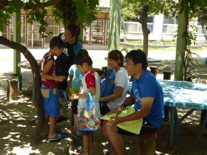 1年生はプール水泳が終わったものから一目散にブドウ棚に。