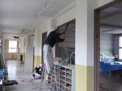 5年生の教室の「窓枠撤去工事」が始まりました。
