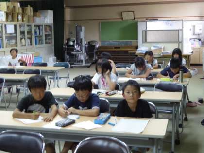 今日は、すでに夏休みの宿題を仕上げた児童が多く、担当者が用意した算数のプリントに取り組んでいました。