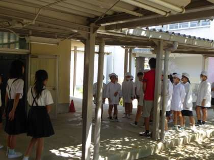 今日から、給食がスタートということで、あわてて「給食室」へ。