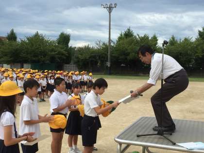 水泳記録会の表彰を行いました 〜児童朝会〜