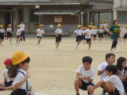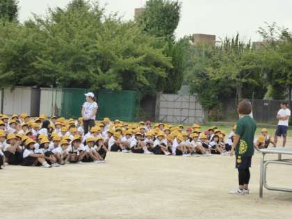 全員整列の後、5年生と6年生だけ場所を変えての整列練習を指示し、低中学年は黙ってそれを見守りました。見事な整列に最後は全員で拍手。