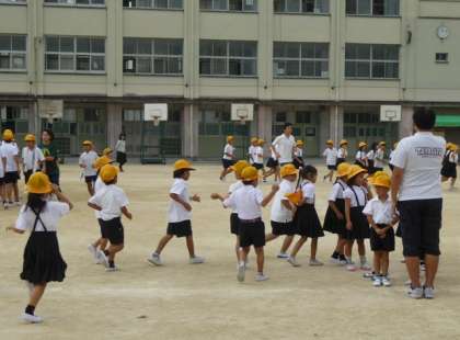 先生の指示に従って、すぐに机の下に潜り込み、「揺れが収まった」という連絡の後、全員運動場に避難しました。