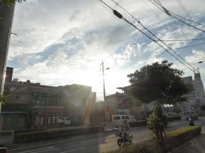 薄い雲がかかっていますが、太陽の光がまぶしい朝です。