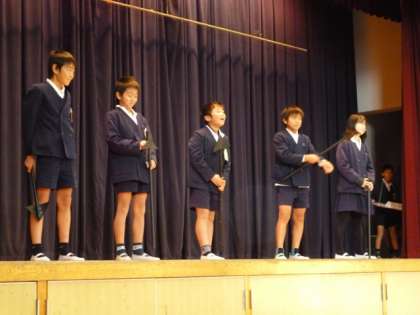 5日(木)、今日の児童集会は、健康委員会の「かぜに負けへんで!」
