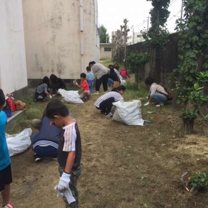 日頃学校の施設を利用していることに感謝して、草抜きを中心に汗を流してくださいました。