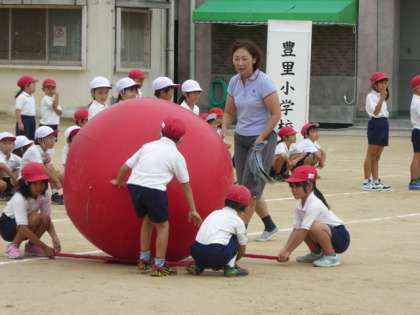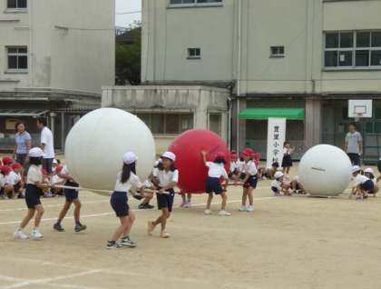 慣れない大玉に悪戦苦闘 〜運動会2年生〜