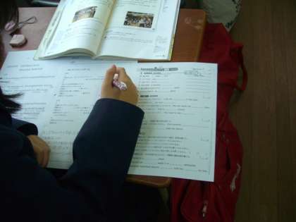 少しだけ大きくなった豊里の卒業生を見て、みんな変わらないと思いきや、そこはさすが中学生。自分で単語の意味を調べたり、英文を音読したりすることにも慣れていました。