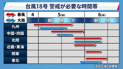 台風18号は、予想されていた進路より北側を進行、速度も遅くなった