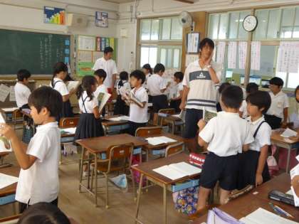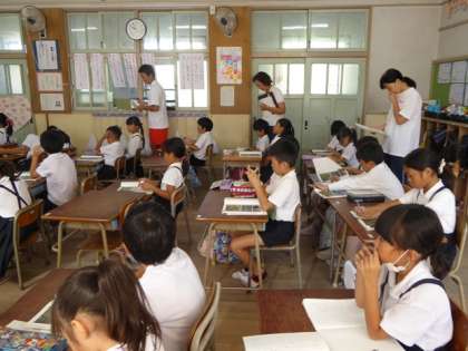 しっかりとした授業案を作成し、管理職を含む複数の教員が授業を見学します。授業が終わった後は、授業に関しての批評・高評です。