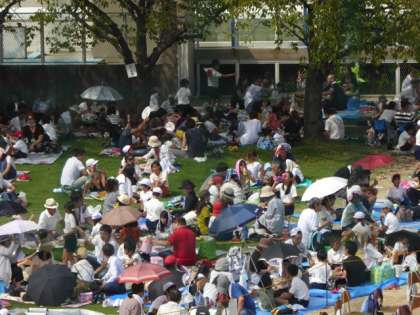芝生広場もフジ棚のベンチもたくさんの保護者でいっぱいでした
