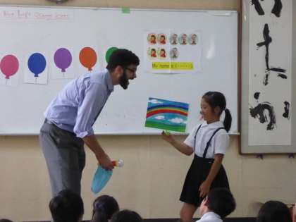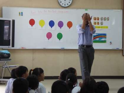 「favorite」(大好きな)という難しい単語を使い、好きな色を尋ねるのですが、子ども達の学習能力はスゴイ、難なくクリアし見事に使い切っていました。