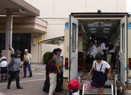 狭い車内はすぐに子ども達で満員。今度は、新たに借りる本が両手一杯です。