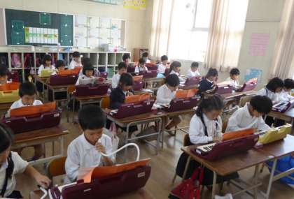 先ず、4組が、♪♪小鳥はとっても歌が好き〜かあさん呼ぶのも歌で呼ぶ〜♪♪と歌と一緒にかわいいダンス。3組は、声をそろえてお願い文を暗唱した後に、首を横にペコッとポーズ。2組には教室まで呼び出され(笑)、ピアニカで「カッコー」の上手な上手な演奏。