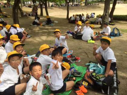 お昼は扇町公園で食べ、かしこく見学できたのでご褒美に「お楽しみタイム」もありました。