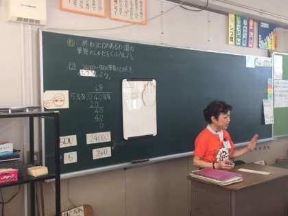 4年生の算数(少人数習熟度授業)、渡口先生の授業です。