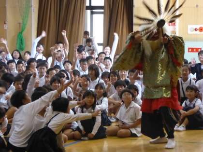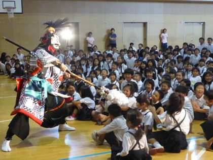 〇和太鼓に歌舞伎・能・狂言などの要素を取り入れたという斬新なスタイル。子ども達を巻き込んで、会場は一つになって盛り上がっていました。