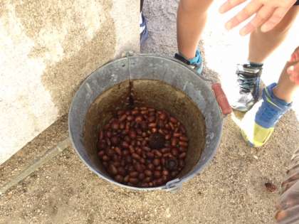 洗ったどんぐりは干して生活科の学習で使います。バケツいぱいのどんぐりが1年生のためにスタンバイ完了です!