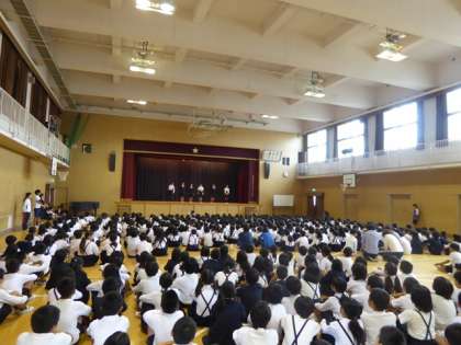 今朝は本当に久しぶりに体育館での集会です。