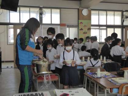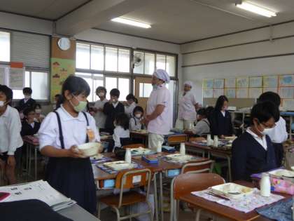 また、子ども達にとっても、こうして、毎日調理してくれている調理員さんが、自分たちの教室まで足を運んでくれることは本当にうれしいことですね。