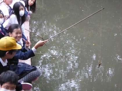 するめをエサに見事にザリガニを釣り上げていました(笑)