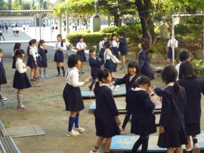 休み時間がはじまると、ジャンプ台にはすぐに長い列。