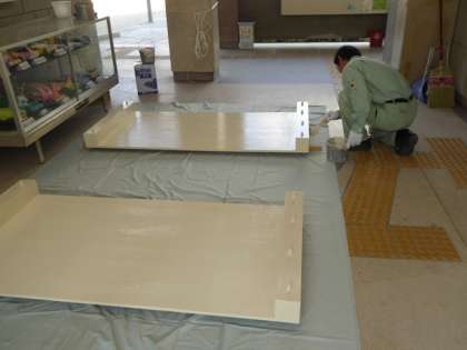 今、管理作業員さんが一生懸命に新しいジャンプ台を作ってくれています。雨水に耐えられるように何度も耐水用ペンキを塗り重ね、景色を映し出すほどピカピカに光り輝く天板。出来上がりはもうすぐです。