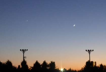 お月さんと並んでひときわ明るい星(左の塔の上)は『金星』
