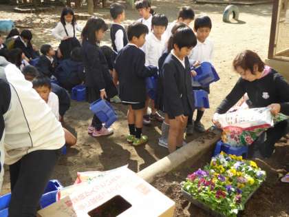 来春に一杯花が咲きますようにと願いを込めて、一鉢一鉢大切に植え込みを行っていました。