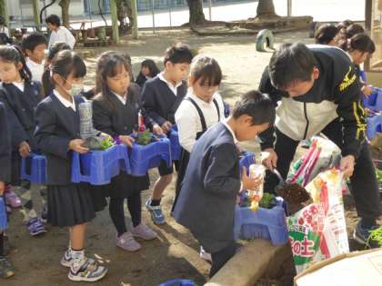 昨日のサツマイモ掘りに続き、2年生の生活科の授業。