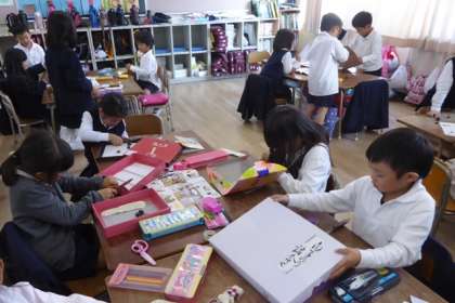 でも、切り取るためのナイフやはさみの使い方は見ていてちょっとハラハラ、担任の尾小谷先生もつきっきりでした。
