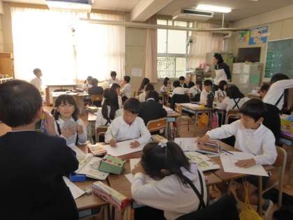 1年1組の作品が仕上がるまでの間に、2組・3組・4組の授業も参観。