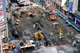 縦横およそ30メートルにわたって大規模に陥没したのは先週の8日(火)、下水管が破裂し水道やガスなどすべてのライフラインが寸断されるほどの大事故でした。
