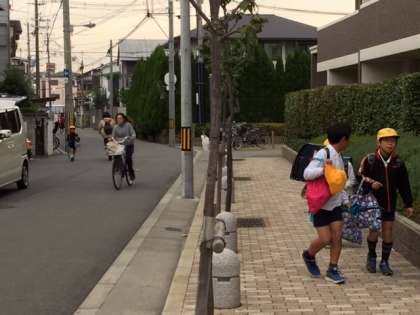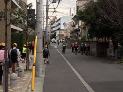 今朝、子ども達の登校の様子を見に行くと、ほとんどの子ども達は道に広がらずにしっかりと登校できていました。