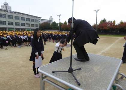 11月14日(月)、月曜日の朝は「児童朝会」、