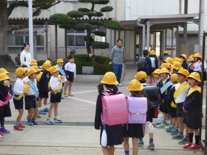 少し冷えるものの好天気の中、元気に大きな声で児童の登校を迎えてくれました。今日も全員が手作りのタスキを持参、タスキには「げんきにあいさつ」「ハッピーあいさつ」「えがおであいさつ」・・・などなど一人一人の思いが書かれており、あいさつ運動に大きな華を添えてくれました。