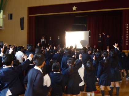 「だれや、だれや??」で大盛り上がりの体育館でした。