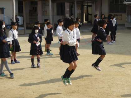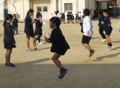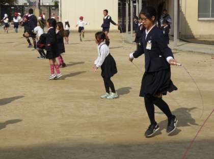 日向に出るとポカポカと絶好のなわとび日和、
