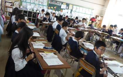 上がった時には、アルトリコーダーをつかってタンギング(短く音をきる演奏方法)の練習中、全員そろったなかなか見事な演奏でした。