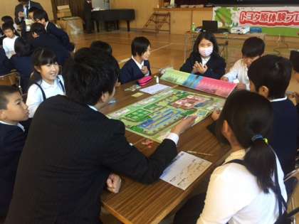 1テーブルに1人ずつトヨタ自動車の方が先生として「カーアンドエコゲーム」の進行を助けてくれ、わからないことがあればすぐに教えてくれていました。