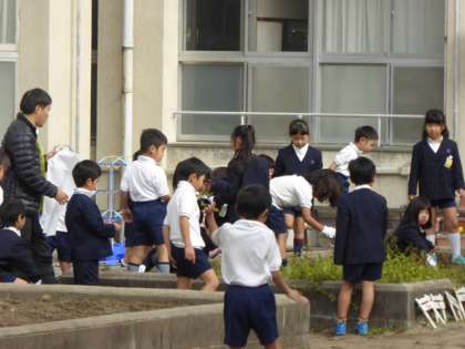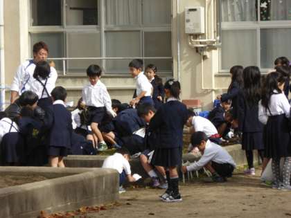 「植えるのはチューリップ。でも、学習園に植えるのではなく、植えるのは前にアサガオを植えていた青い植木鉢。その植木鉢の土をこの学習園からとる準備です。」と教えてくれました。