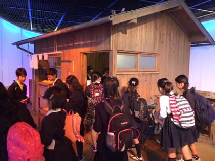 チキンラーメン作りは1度に48人が定員なので学年を2グループに分けて待っている時間に1階の見学です。