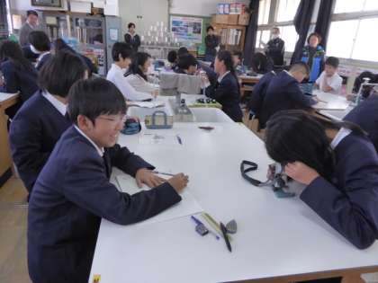 でも、使う顕微鏡が、私が見慣れたのぞくところ(接眼レンズ)が1つの顕微鏡ではなく、2つのレンズがついた『双眼実体顕微鏡』。初めて見ましたが、子ども達にとってはこっちの方が扱いやすいんだそうです。