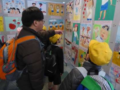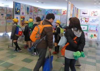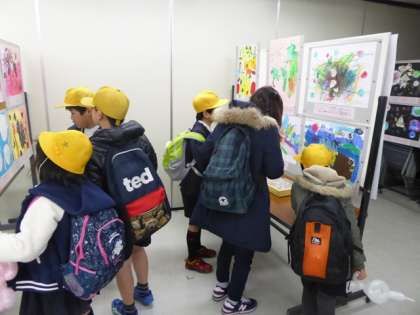 普段なら子ども達の作品を見つけるのひ時間を要するのですが、今回は会場準備を手伝った井辺先生が子ども達すべての作品の場所を事前にチャックしてくれていたので、ゆっくり見学することができました。