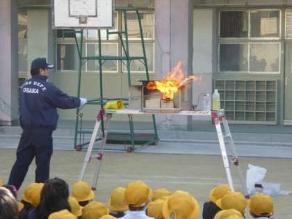 ●「油火災」の模擬実験。