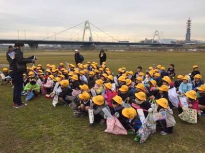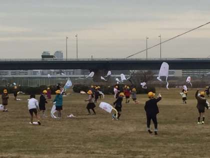 今日の午前中 1年生は淀川河川敷へたこあげに行きました。