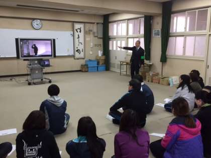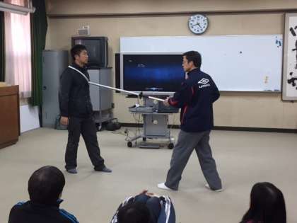 研修会の最後は多目的室に集まって、警察の方より今日の経験をふまえた本校の防犯体制についてのアドバイスと「さすまた」の効果的な使い方を教えていただきました。