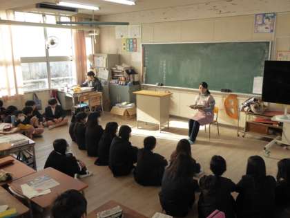 保護者や地域の方々で結成するボランティアグループ『えほんばたけ』さんが各学年順番に読み聞かせを行ってくれています。